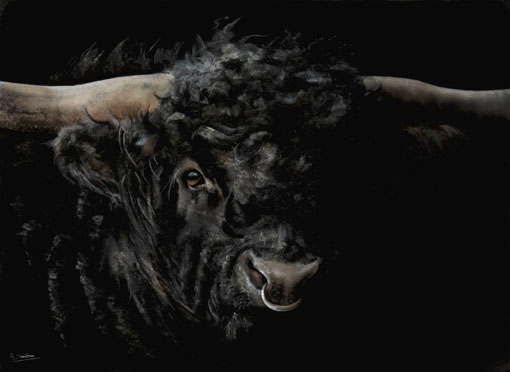 A Black Highland Bull Print titled: Black on Black (2006). The birth of Angela's all-black artwork.